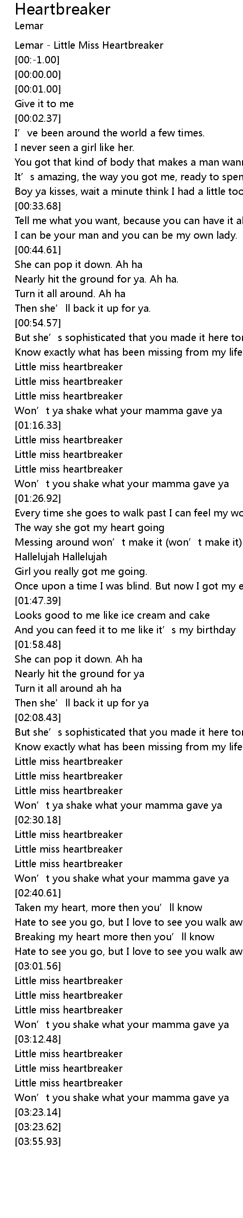 | [02:33.33] | Little miss heartbreaker |