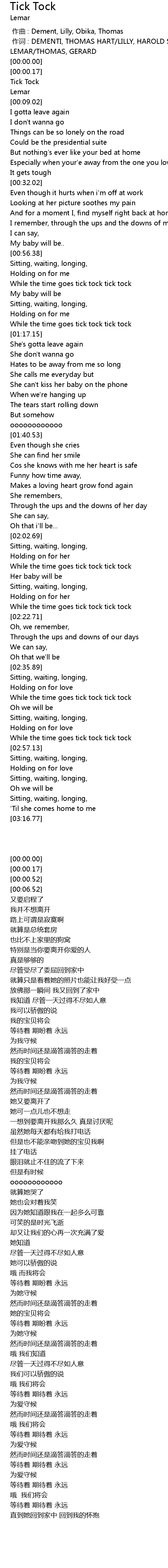 | [00:00.00] | zuo ci : DEMENTI, THOMAS HART LILLY, HAROLD SPENCER JR OBIKA, LEMAR THOMAS, GERARD |