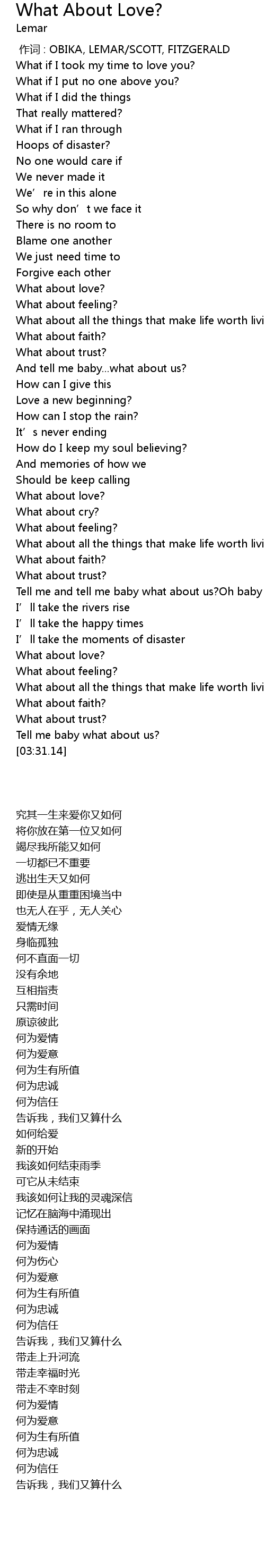 | [02:27.33] | Tell me and tell me baby what about us? Oh baby |