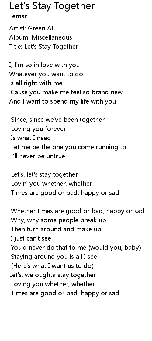 | Let's, let's stay together | |