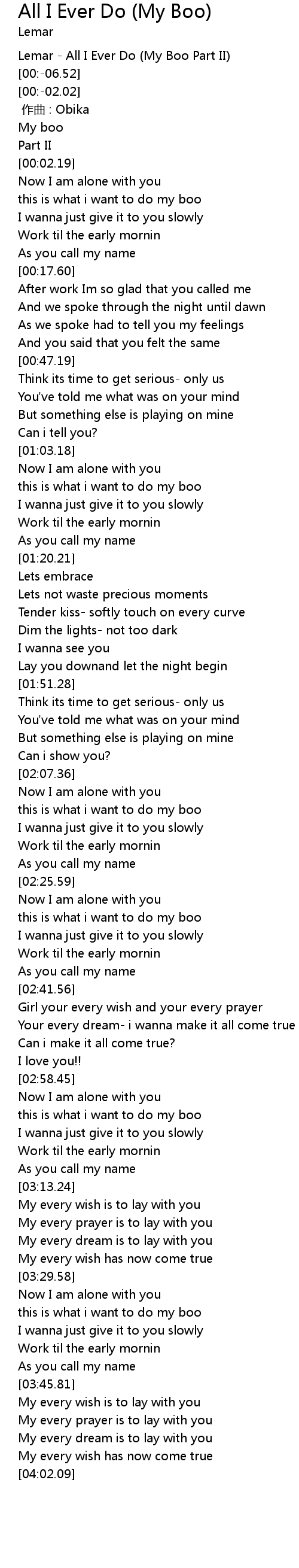 | [03:01.00] | this is what i want to do my boo |
