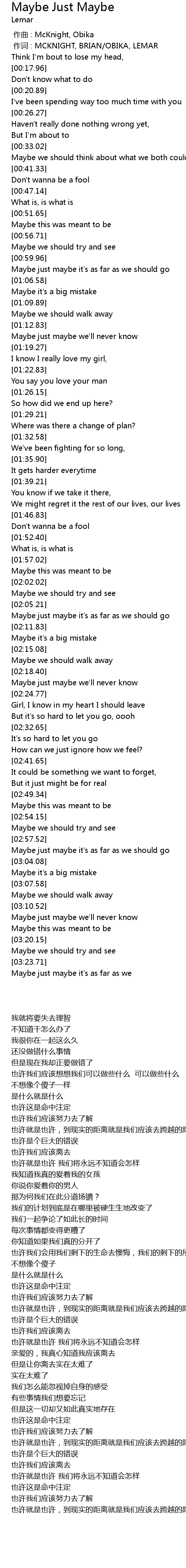 | [00:00.00] | zuò qǔ : McKnight, Obika |