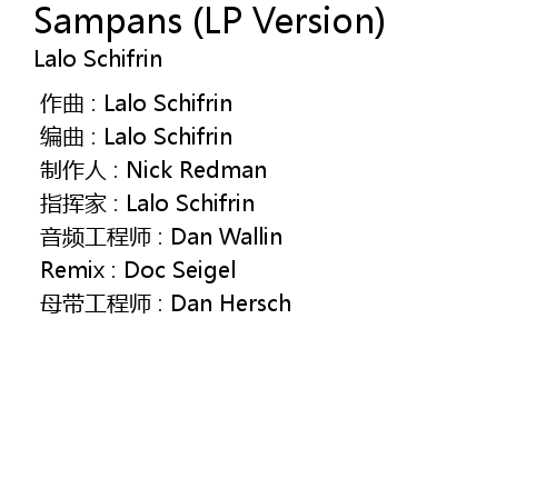 | [00:00.000] | 指挥家 : Lalo Schifrin |