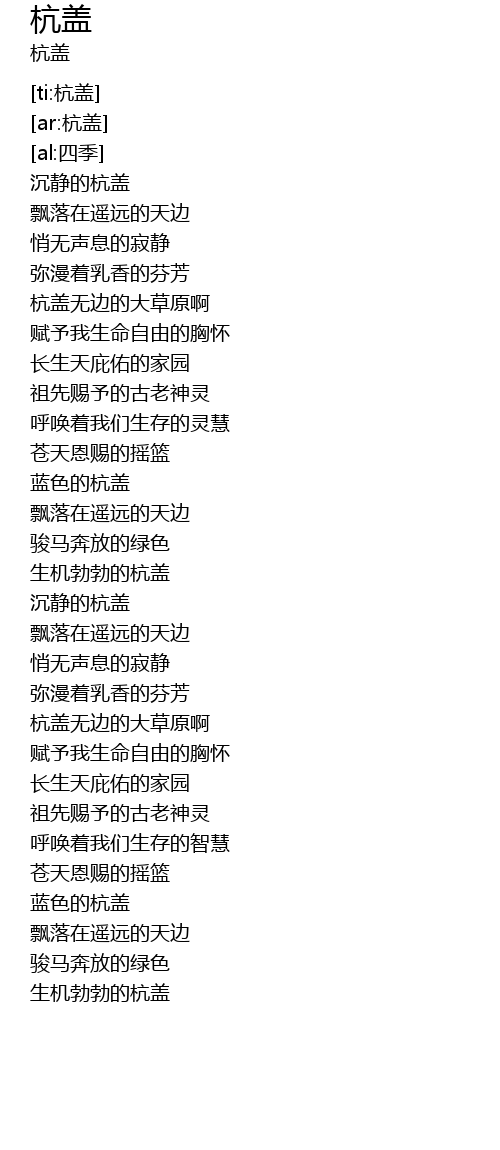 | [01:50.35] | 杭盖无边的大草原啊 |