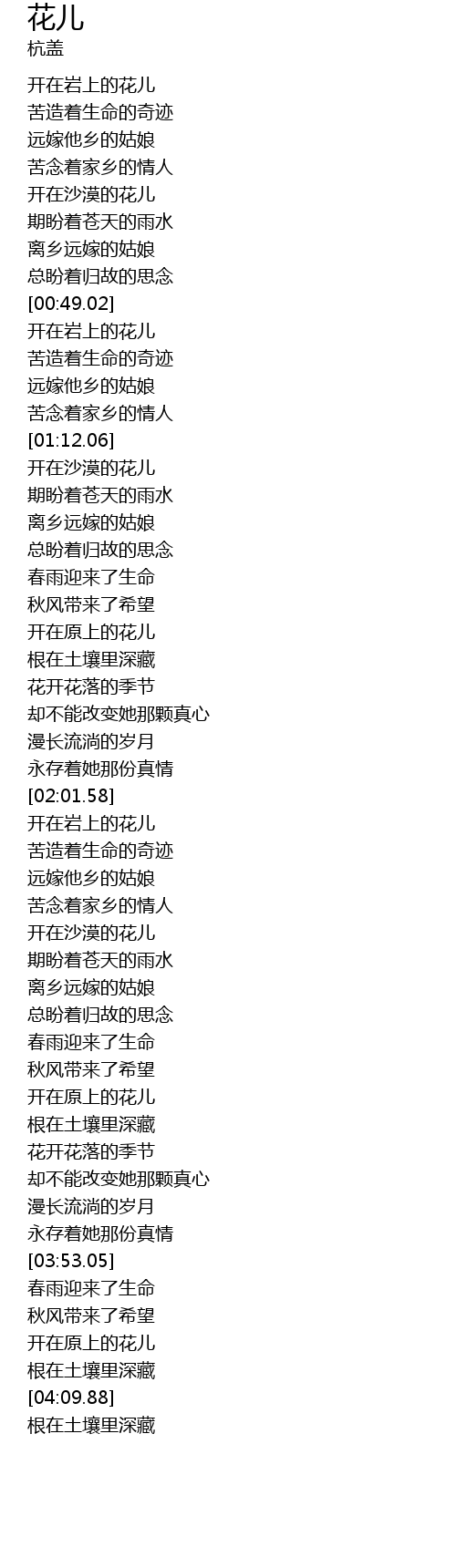 | [04:01.89] | kāi zài yuán shàng de huā ér |