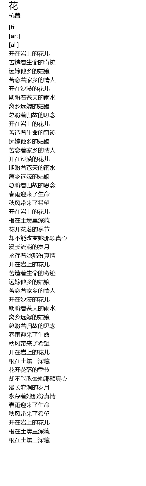 | [00:16.76] | 开在岩上的花儿 |