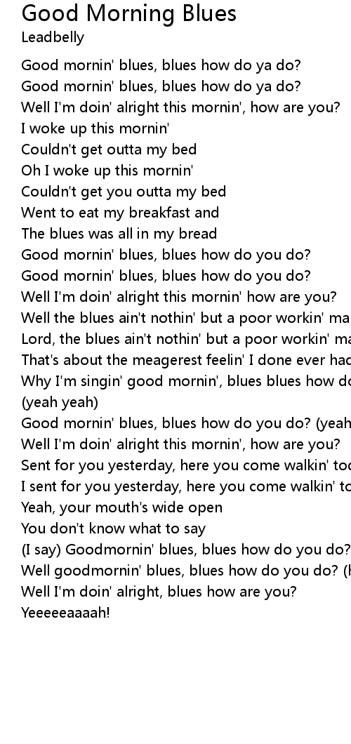 Good mornin' blues, blues how do you do? (yeah yeah) |