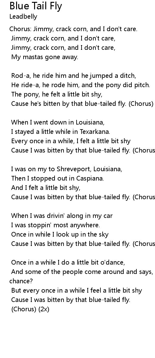 | Cause he's bitten by that blue-tailed fly. (Chorus) | |