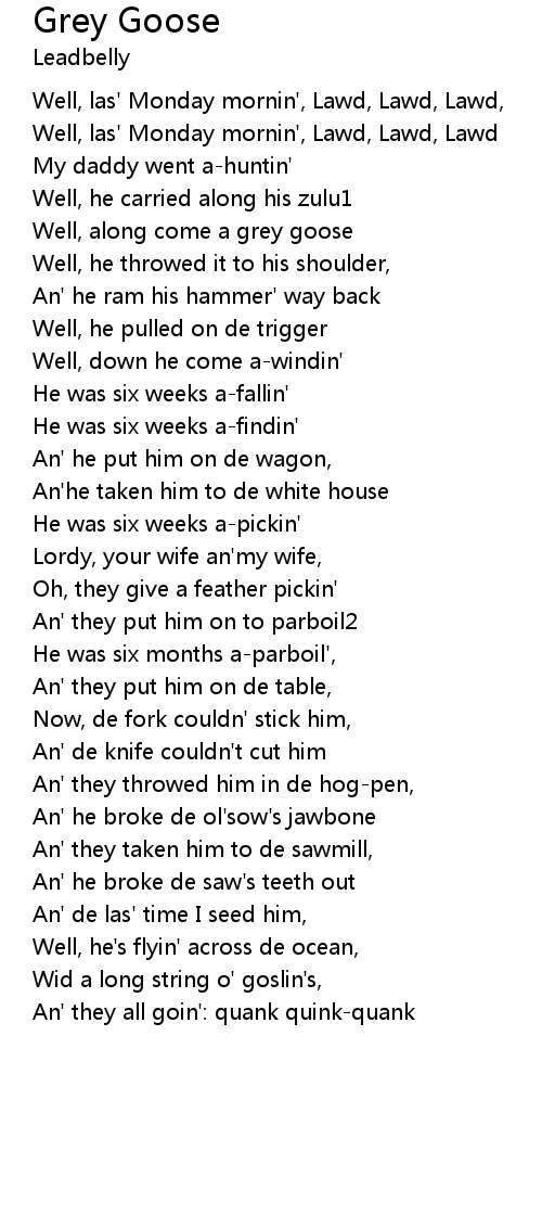 Well, las' Monday mornin', Lawd, Lawd, Lawd