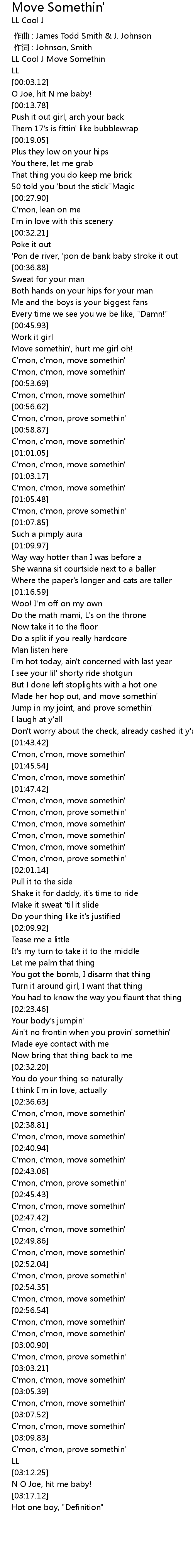 | [00:55.12] | C' mon, c' mon, move somethin' |