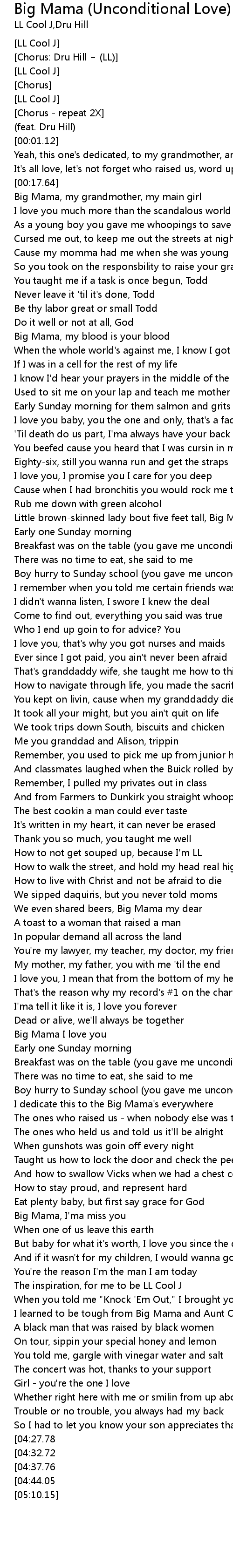 | [04:24.76] | So I had to let you know your son appreciates that, Big Mama |
