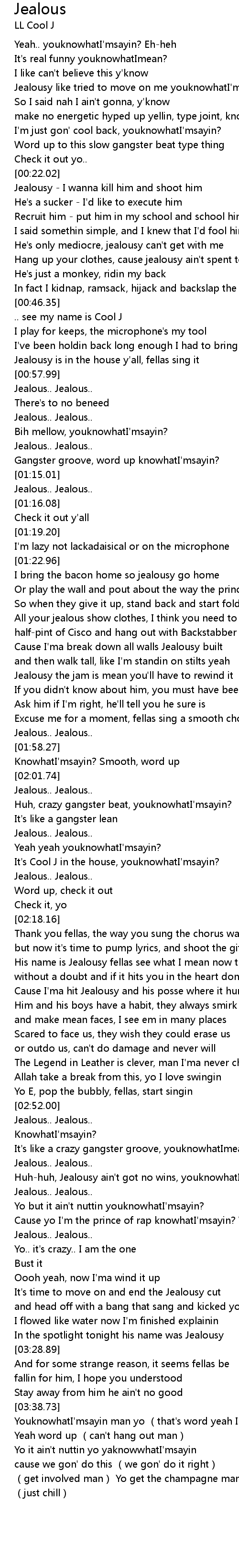 | [01:43.97] | Jealousy the jam is mean you'll have to rewind it |