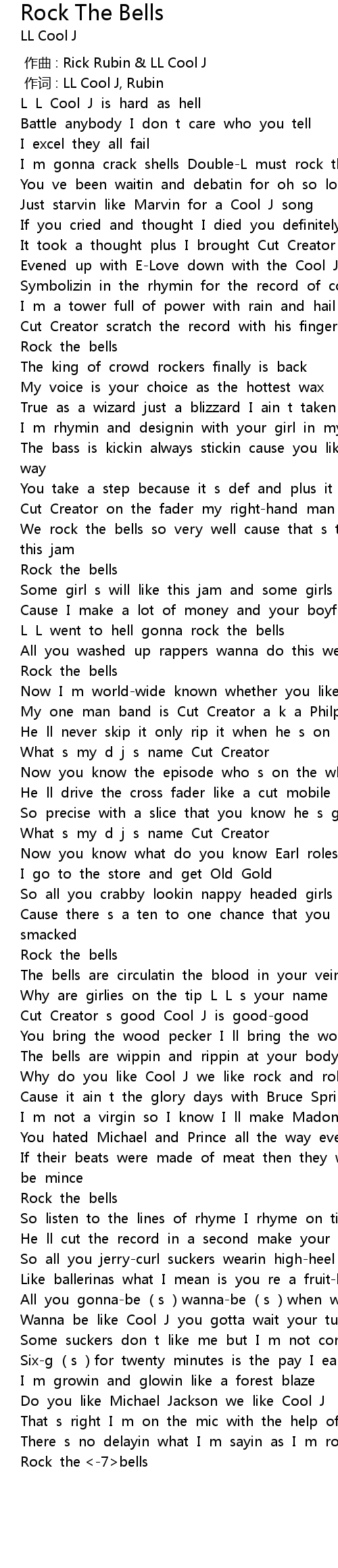 | [00:00.00] | 作曲 : Rick Rubin & LL Cool J |
