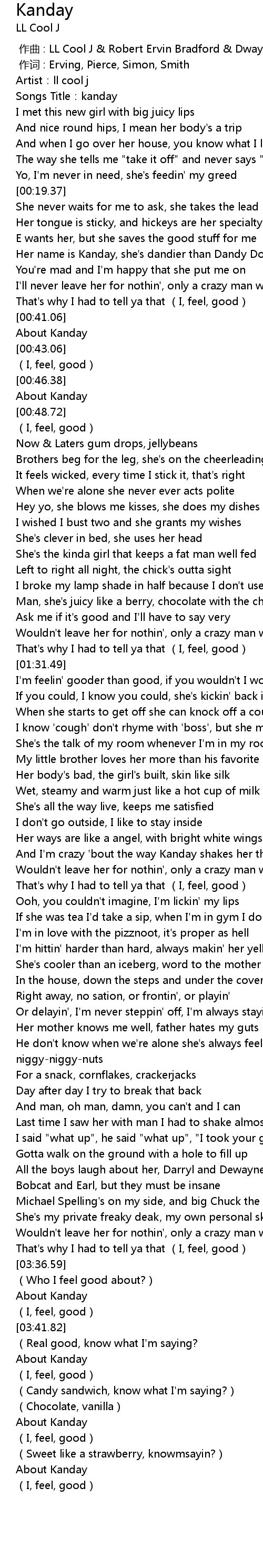 | [02:13.27] | And I'm crazy 'bout the way Kanday shakes her thing |