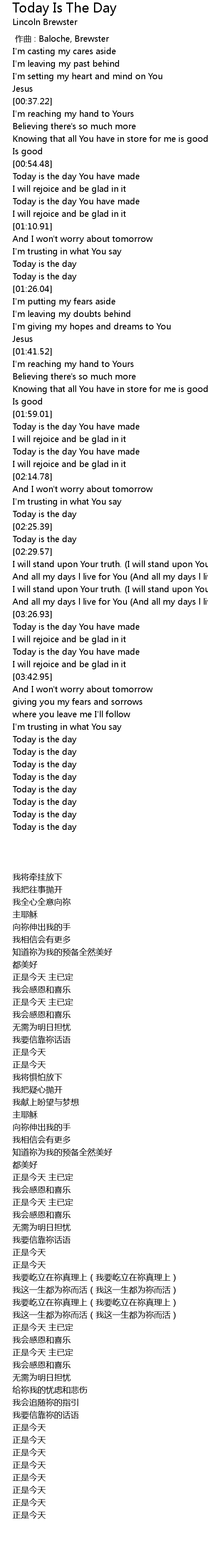 | [03:34.98] | Today is the day You have made |