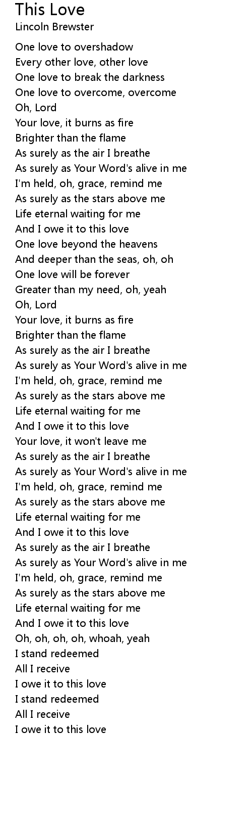 And I owe it to this love |