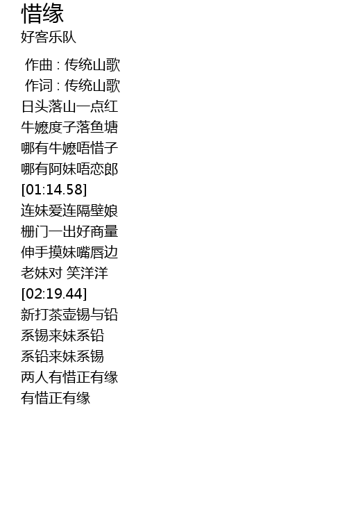 | [00:01.00] | zuò cí : chuán tǒng shān gē |
