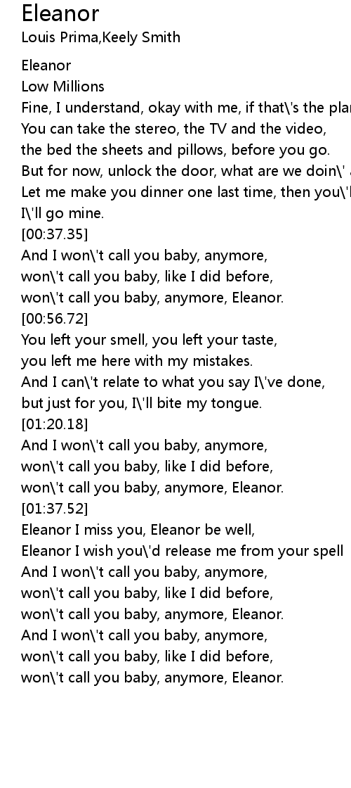 won\'t call you baby, anymore, Eleanor. |