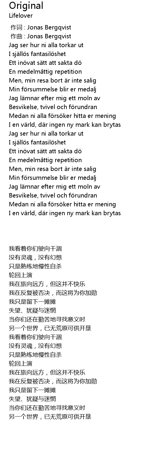 | [00:00.000] | 作词 : Jonas Bergqvist |