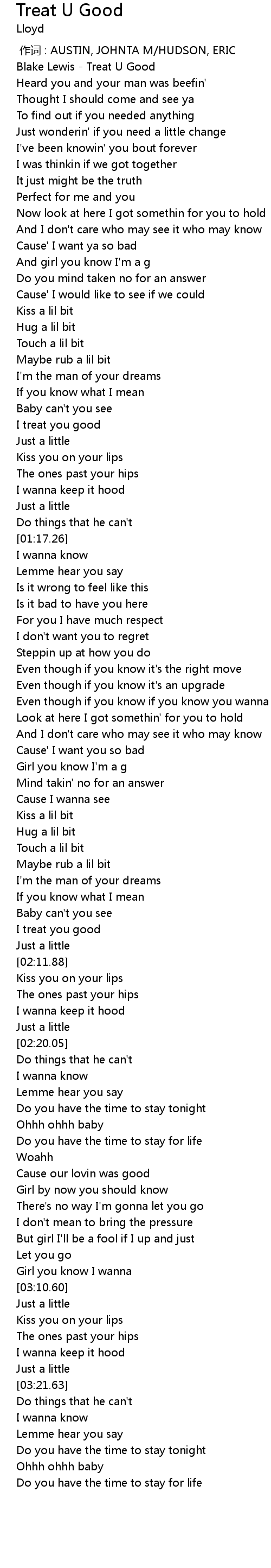 | [00:06.25] | Blake Lewis - Treat U Good |