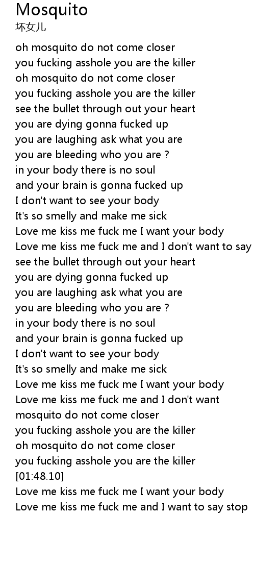 | [00:53.77] | Love me kiss me fuck me I want your body |