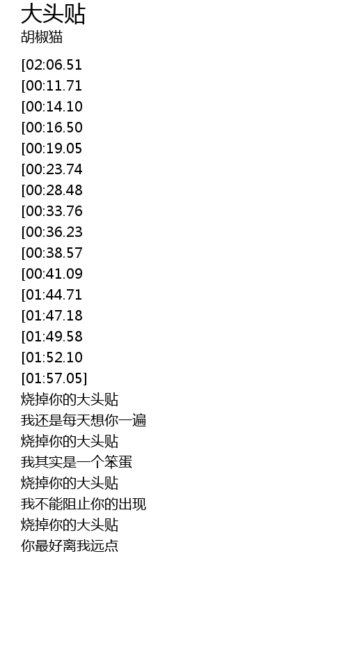 | [01:39.77][00:38.57] | 烧掉你的大头贴 |