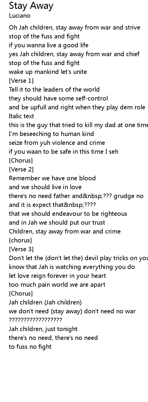 Oh Jah children, stay away from war and strive |