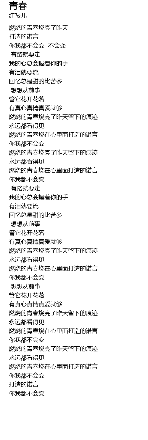 | [04:03.0] | 燃烧的青春烧在心里面打造的诺言 |