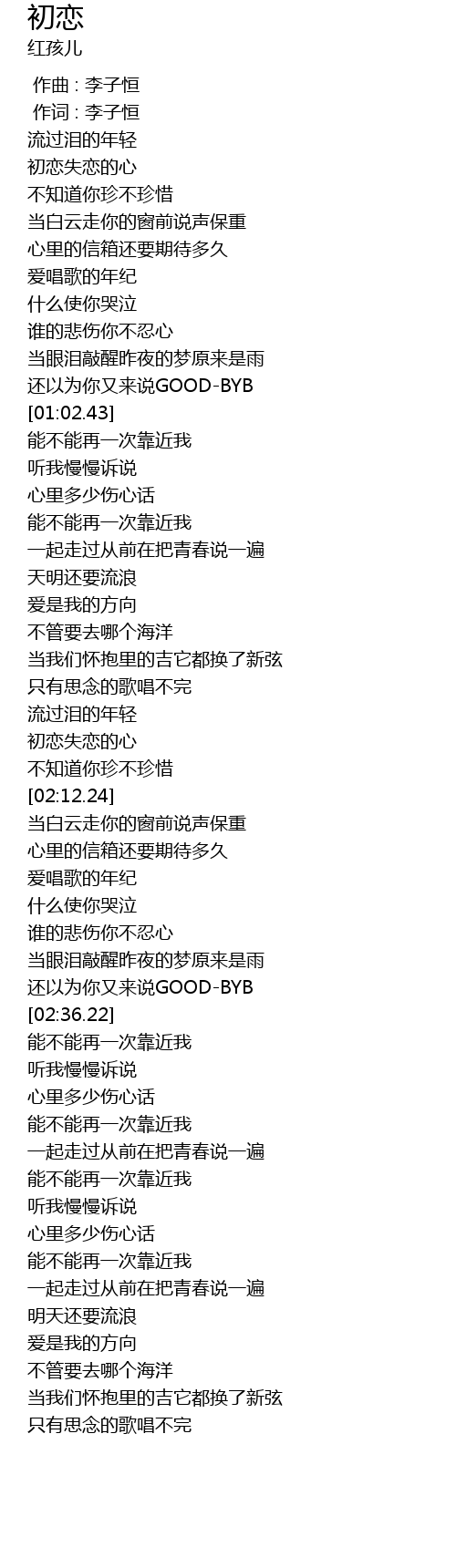 | [02:33.66] | 还以为你又来说GOOD-BYB |