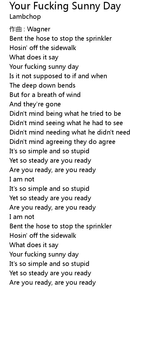 | Your fucking sunny day | |