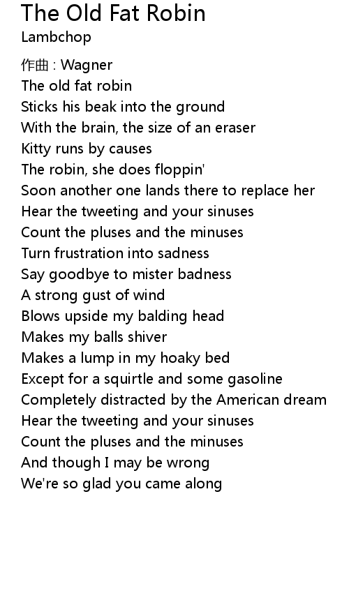 | Song | The Old Fat Robin |