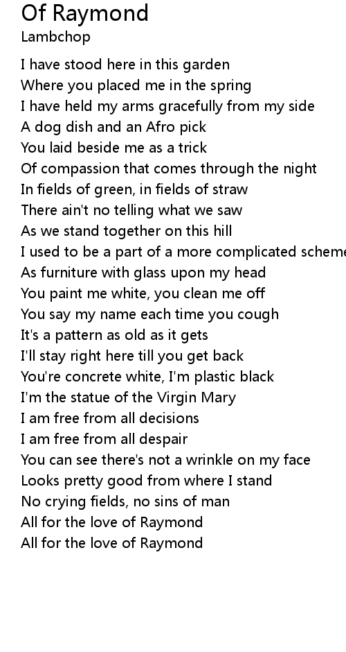 | [02:37.99] | All for the love of Raymond |