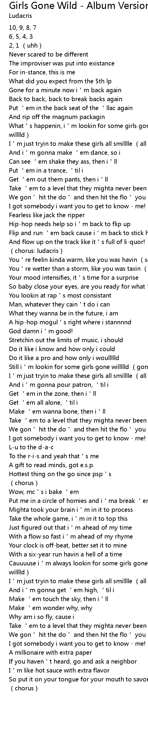 | [01:25.95] | Still i'm lookin for some girls gone willllld (gone willlld) |