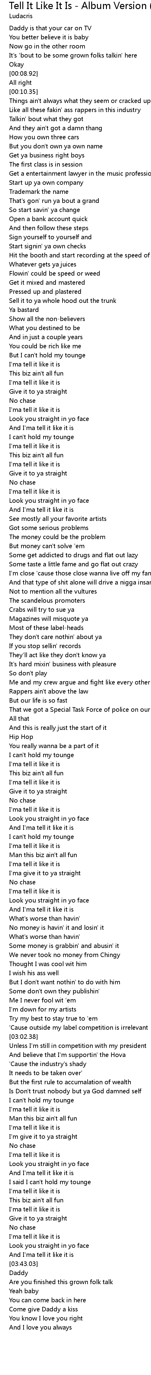 And I'ma tell it like it is |