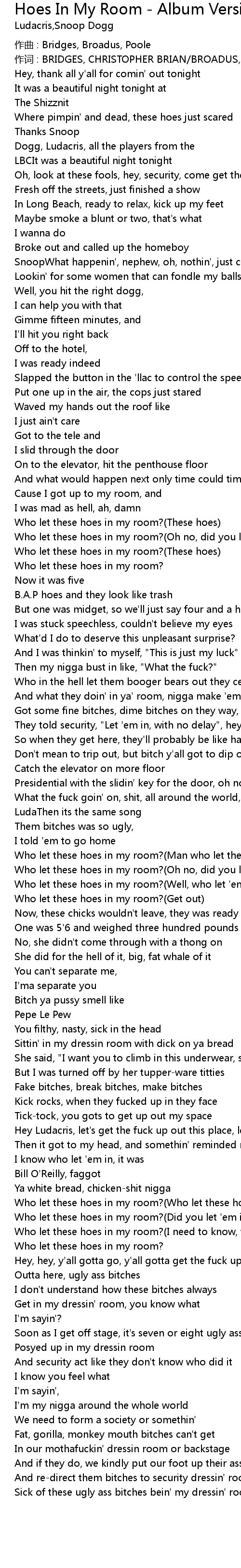 | Who let these hoes in my room?(Who let these hoes in my room?) | |