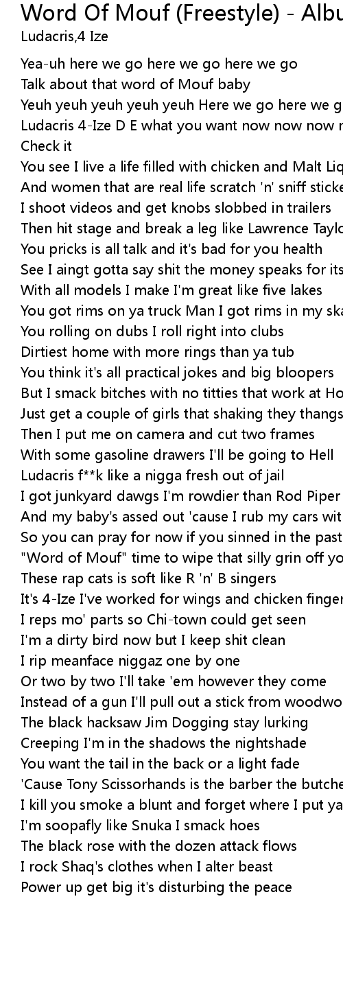 | [01:08.50] | "Word of Mouf" time to wipe that silly grin off yo' ass |