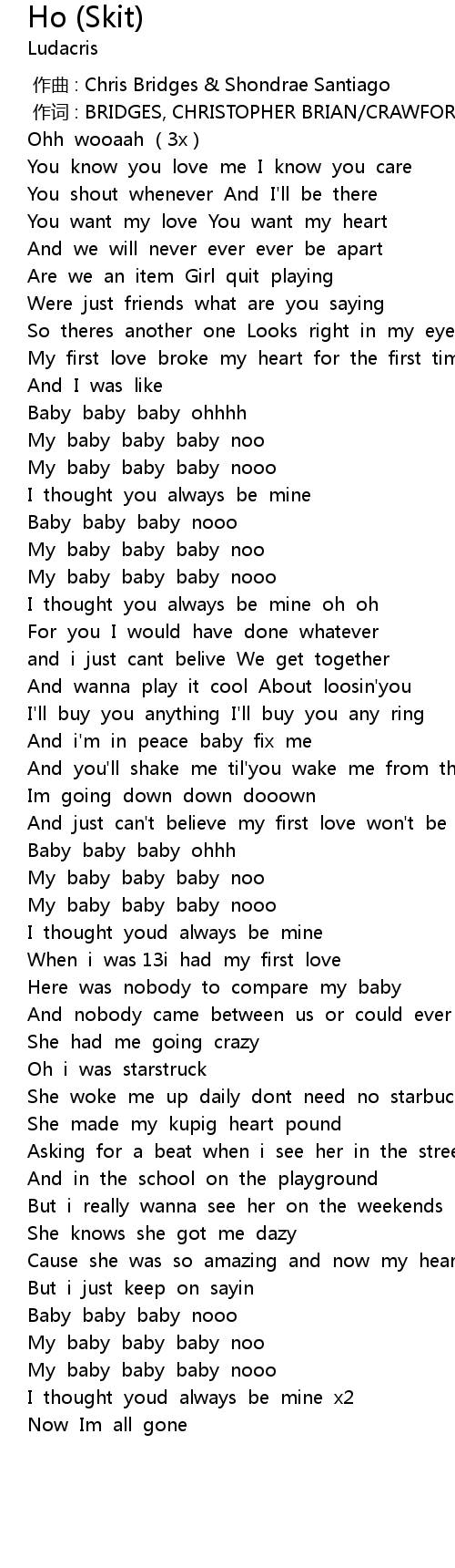 | [00:00.678] | 作词 : BRIDGES, CHRISTOPHER BRIAN/CRAWFORD, SHONDRAE |