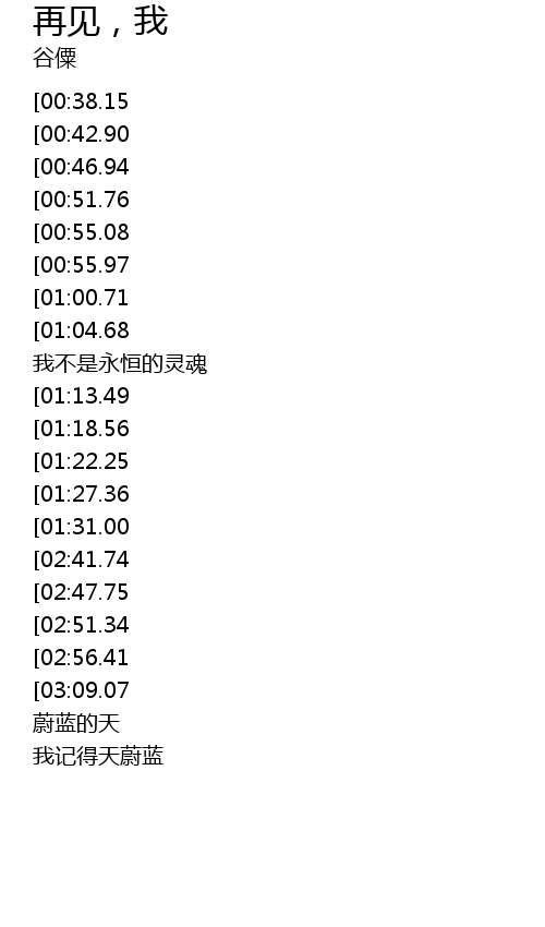 | [01:48.54][00:38.15] | 抬头看还蔚蓝的天 |
