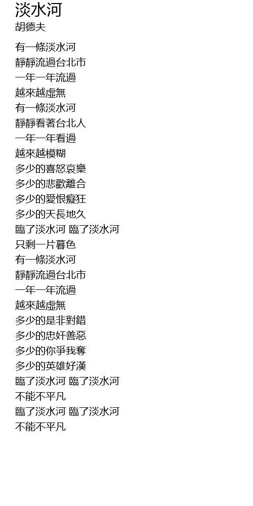 | [03:40.62] | 臨了淡水河 臨了淡水河 |