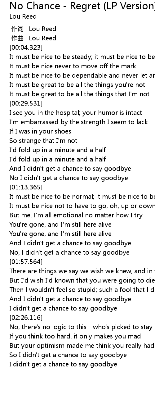 | Song | No Chance - Regret (LP Version) |