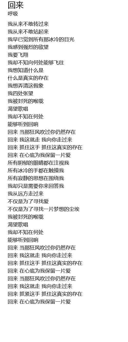 | 回来 抓紧这手 抓住这真实的存在 | |