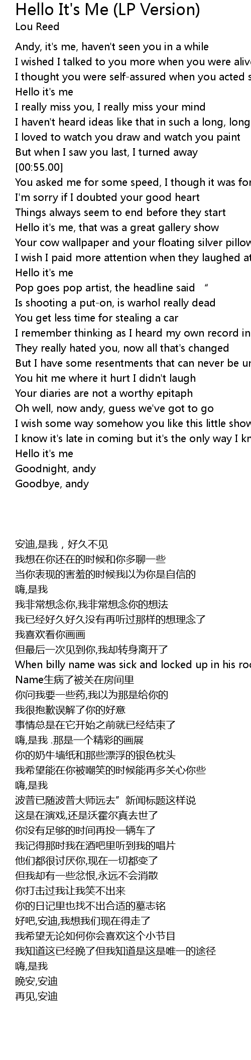 | [00:12.00] | Andy, it' s me, haven' t seen you in a while |
