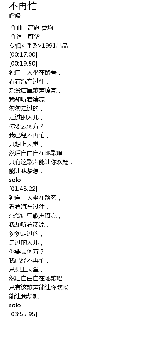 | [00:15.15] | 专辑<呼吸>1991出品 |