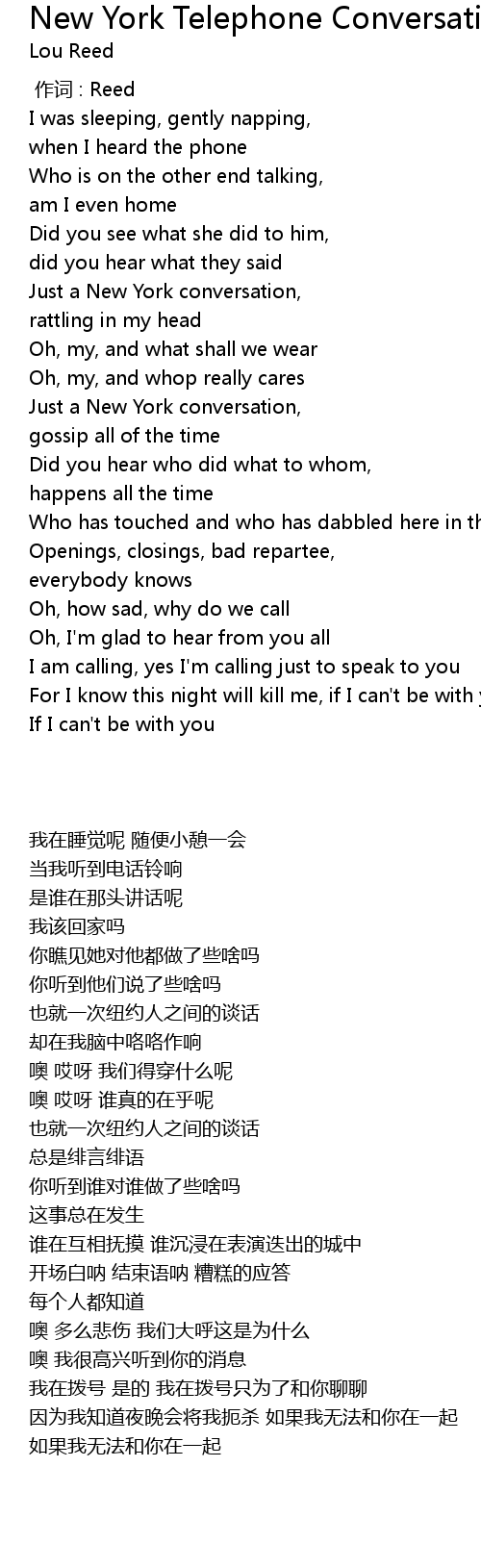 | Song | New York Telephone Conversation |