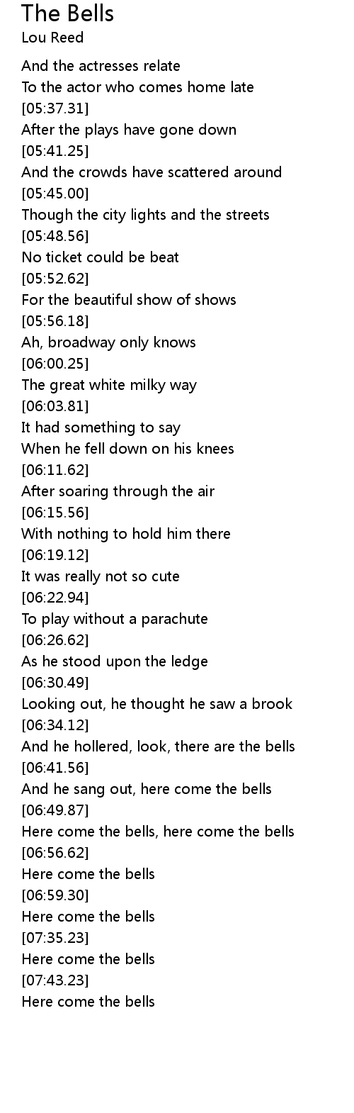 | [06:37.69] | And he hollered, look, there are the bells |