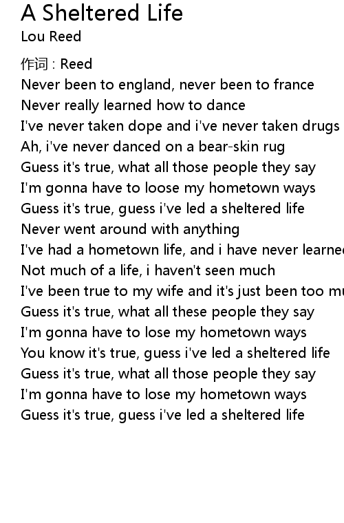 | Guess it' s true, guess i' ve led a sheltered life | |