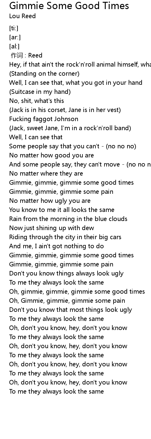 | [01:35.21] | Gimmie, gimmie, gimmie some good times |