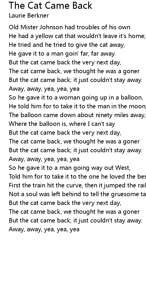 But the cat came back; it just couldn't stay away. |