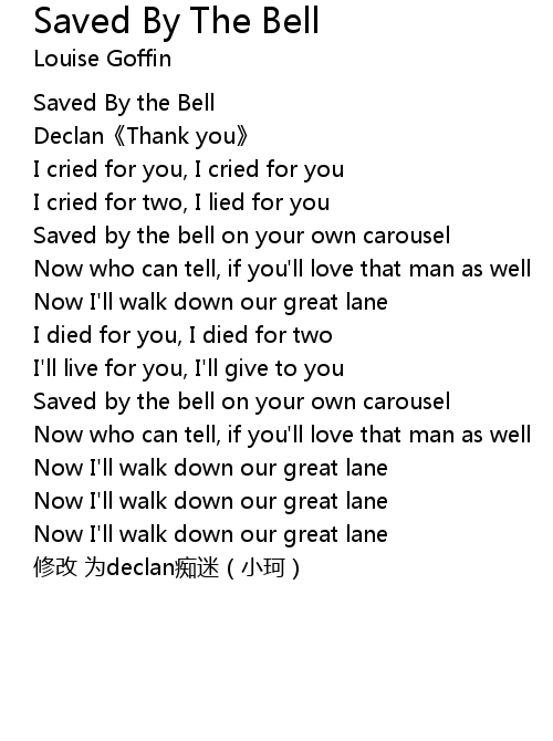 | Song | Saved By The Bell |