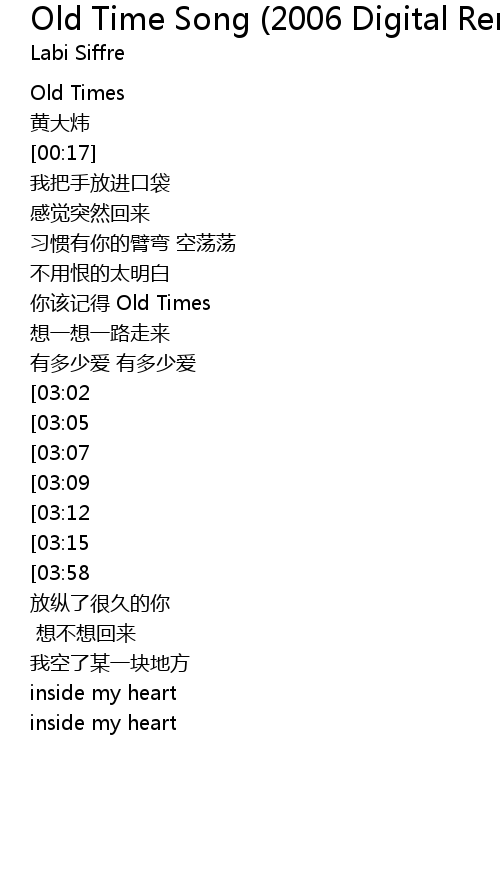 | [00:48] | 你该记得 Old Times |